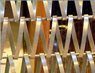 其產品分別采用優質鋁鎂合金、不銹鋼、銅、碳鋼等材料,經特殊編織工藝打造而成,被廣泛用于建筑物的立面、室內隔斷、屏風、吊頂、墻面、窗簾、陽臺和走廊 等。現在在機場、酒店展廳、歌劇院、寫字樓、商場、酒吧、私人住宅等高檔內外裝修中使用,其特點具有不受空間大小限制、顏色任意、安裝簡便、外形別致、曲 雅、非凡個性、高貴品位、裝飾效果生動,因此直接造就了不同的現代金屬裝飾特有的藝術風格,在光的折射下想象空間無限。